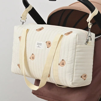 Bolsa de pañales acolchada de alta calidad, bordado con cremallera, estampado de algodón, bolsa de pañales individual, patrón de logotipo para uso en cochecito